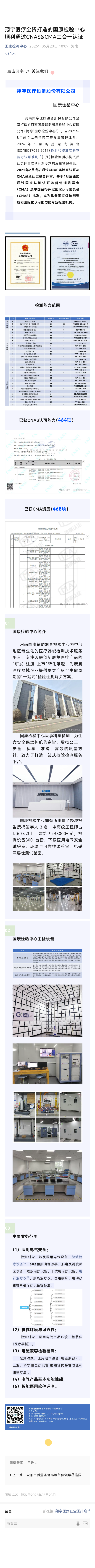 翔宇医疗全资打造的国康检验中心顺利通过CNAS&CMA二合一认证